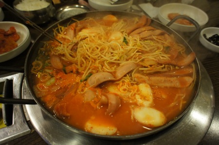 米軍基地から入ってきたハムやソーセージを使ってチゲにしたのが始まりのよう。